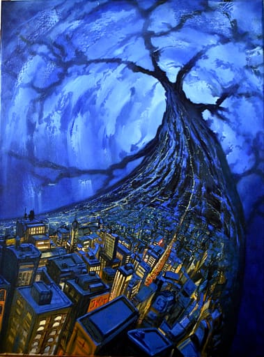 At first glance you might see yourself looking up a tree. Then looking down on a city from birds perspective. The city streets and buildings recede into the distance and become the grooves of the tree bark.